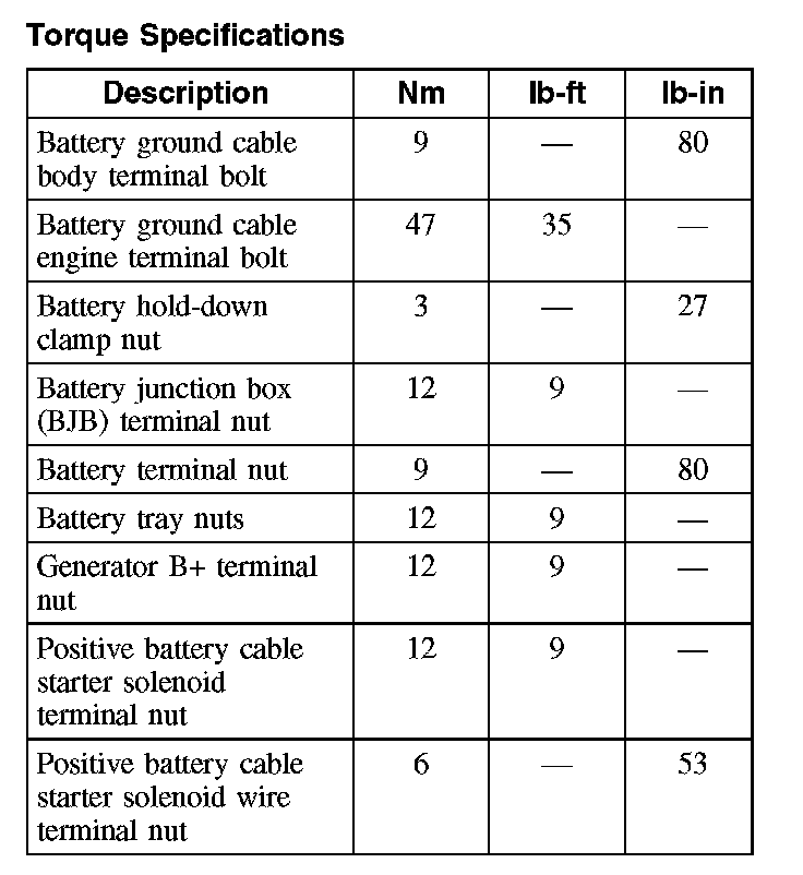 Torque Specifications: