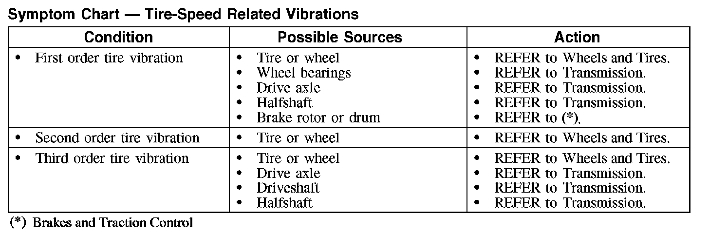 Symptom Chart - Tire-Speed Related Vibrations