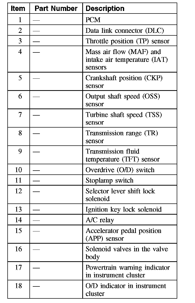 In addition, the PCM receives input signals from certain transaxle-related sensors and switches. The PCM also uses these signals when determining transaxle operating strategy.