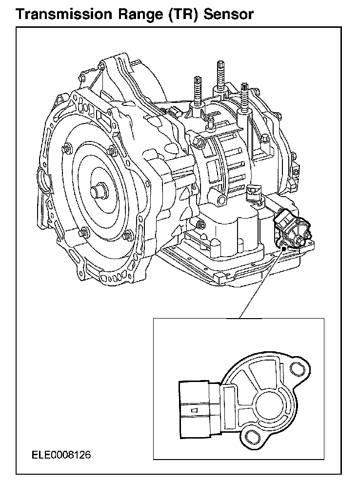The transmission range (TR) sensor is located on the manual shaft on the transaxle housing.