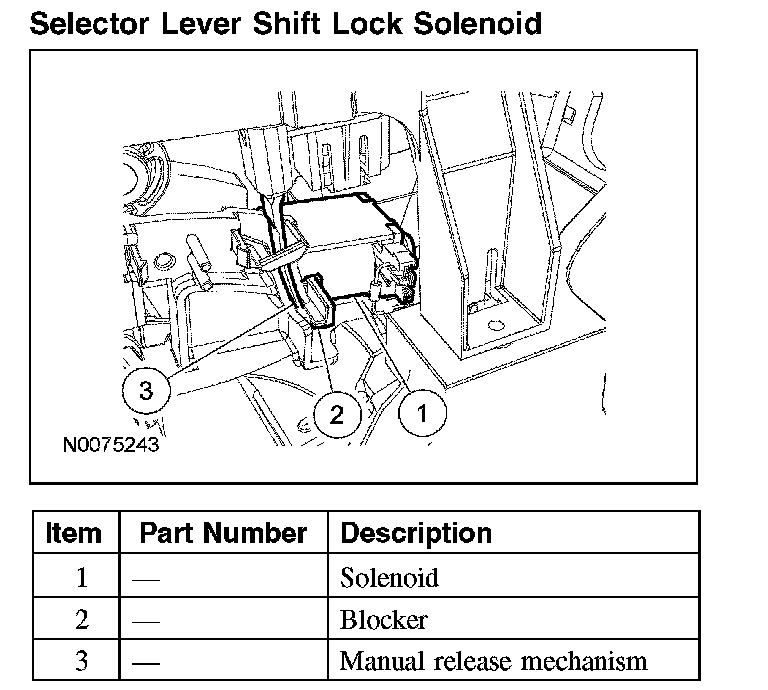 Selector Lever Shift Lock Solenoid: