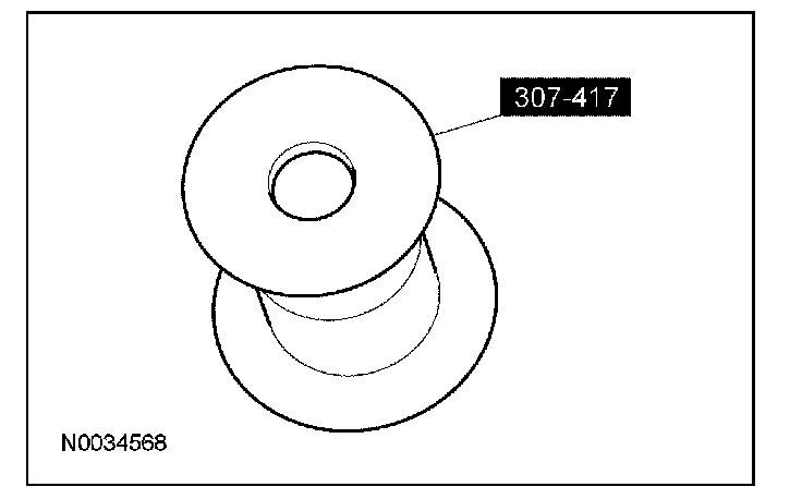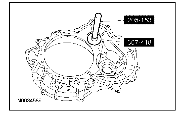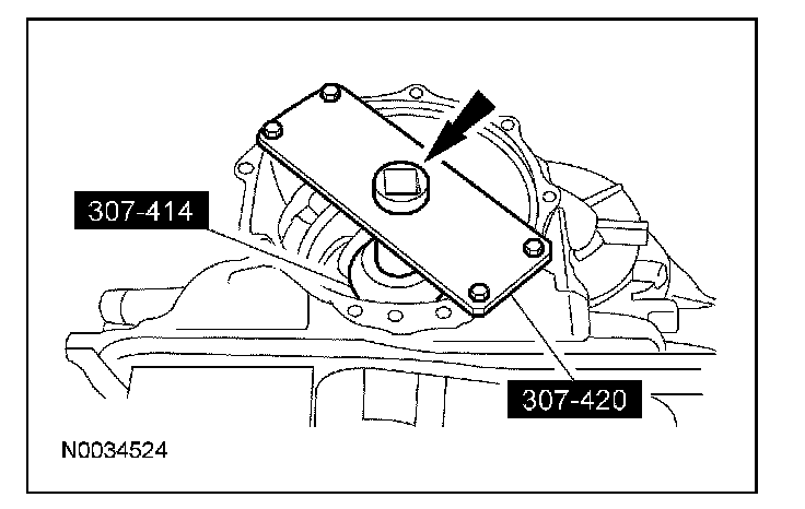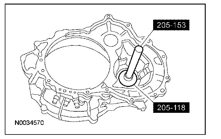 30. Using the special tool, install the correct transfer shaft shim and bearing cup into the converter housing.
