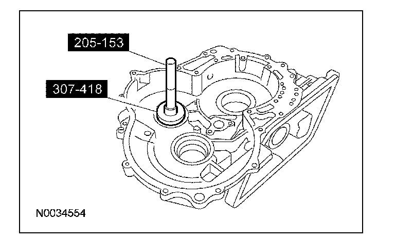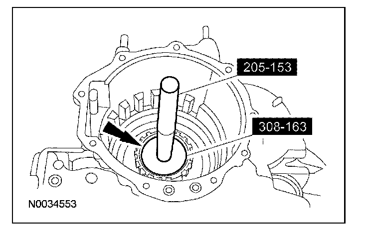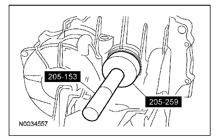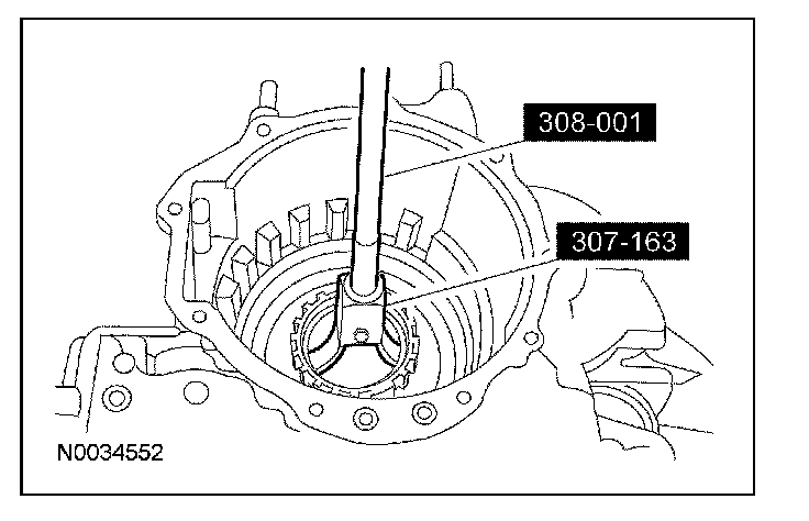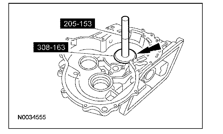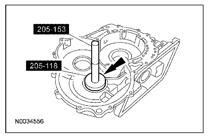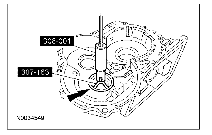 1. NOTE: The converter housing side bearing cups for the transfer shaft bearing and differential case bearing will be installed during the assembly of the transaxle.