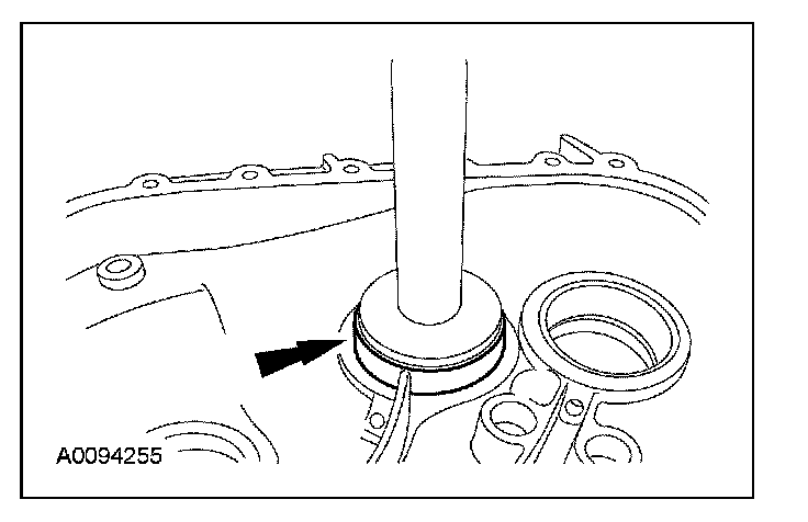 Using the special tools, install the output shaft bearing cup in the case (transmission side).
