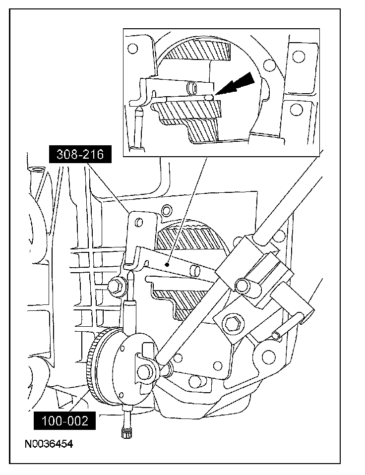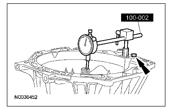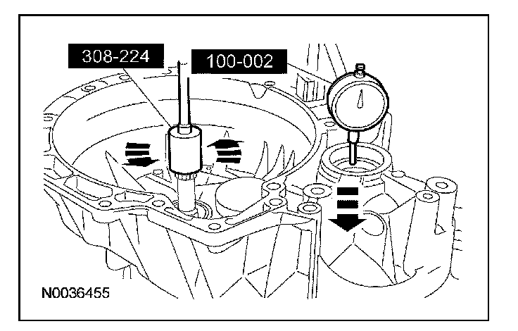 21. Using the special tools, measure the differential end play. Observe and record the dial indicator reading.