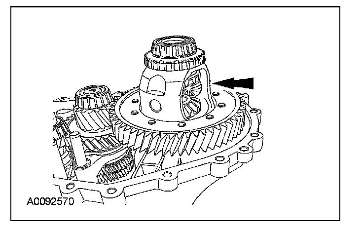 Install a 1.10 mm (0.04 inch) shim. Using a suitable driver, install the differential bearing cup in the case (clutch side).