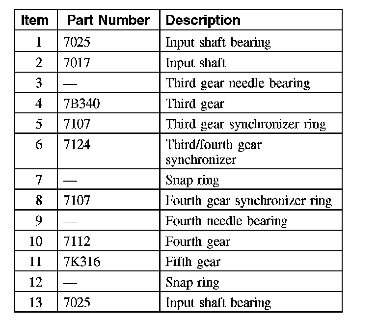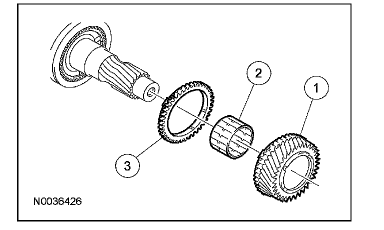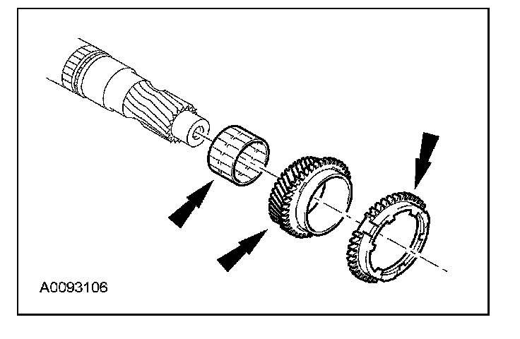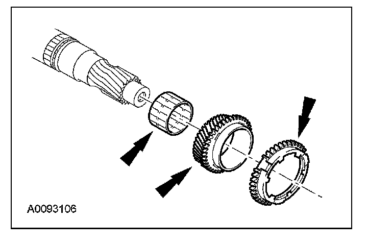 ^ Inspect the synchronizer ring, 3rd gear and the needle bearing for wear or damage. Install new components as necessary.