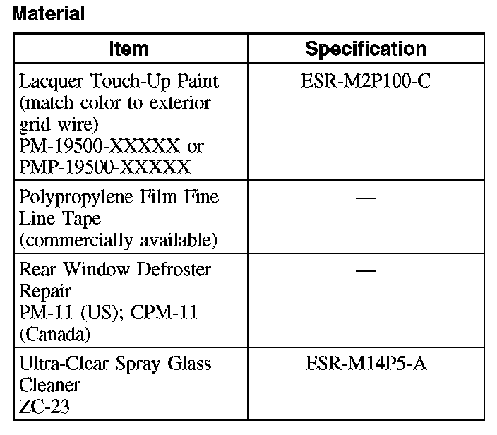 - If the brown layer is not broken or missing, apply only the silver grid repair compound to the break. If both the brown and silver layers of the grid are broken or missing, apply a coating of the lacquer touch up paint across the break in the grid line prior to applying the rear window defroster repair compound. Do not overlap the silver grid line with the paint. Several applications may be necessary to achieve a color match.