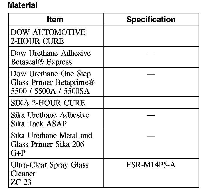 - Be sure to use the same brand and cure-rate products for the adhesive and primer. Do not mix different brands of urethane and primer. Refer to the Material Chart.