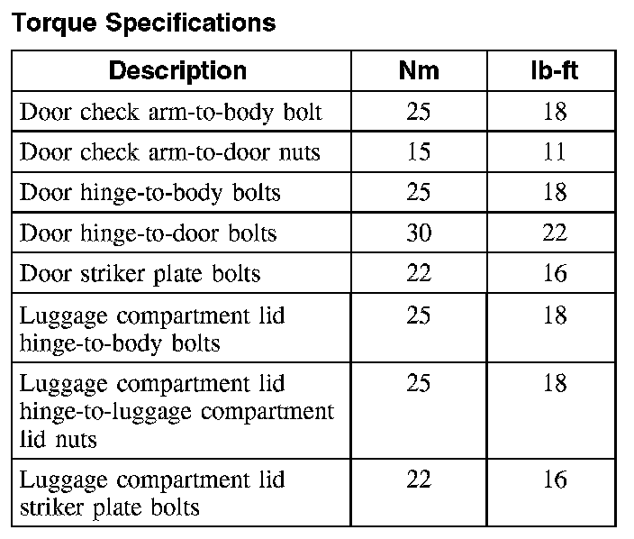 Doors, Hood and Trunk: Specifications