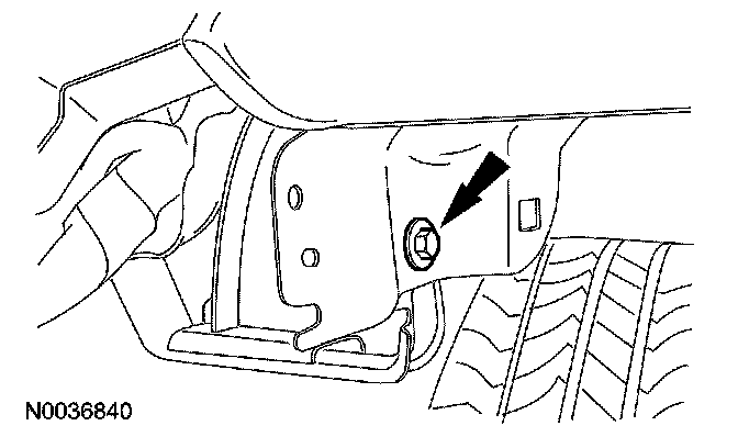 10. Remove the upper rear inner fender bolt.