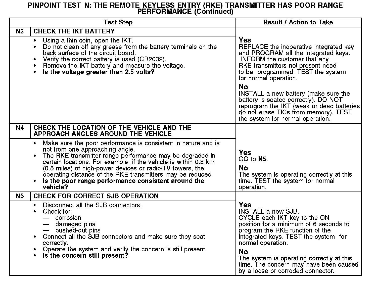 Test N: The Remote Keyless Entry (RKE) Transmitter Has Poor Range Performance