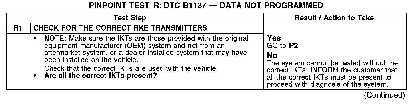 PINPOINT TEST R: DTC B1137 - DATA NOT PROGRAMMEDNormal Operation