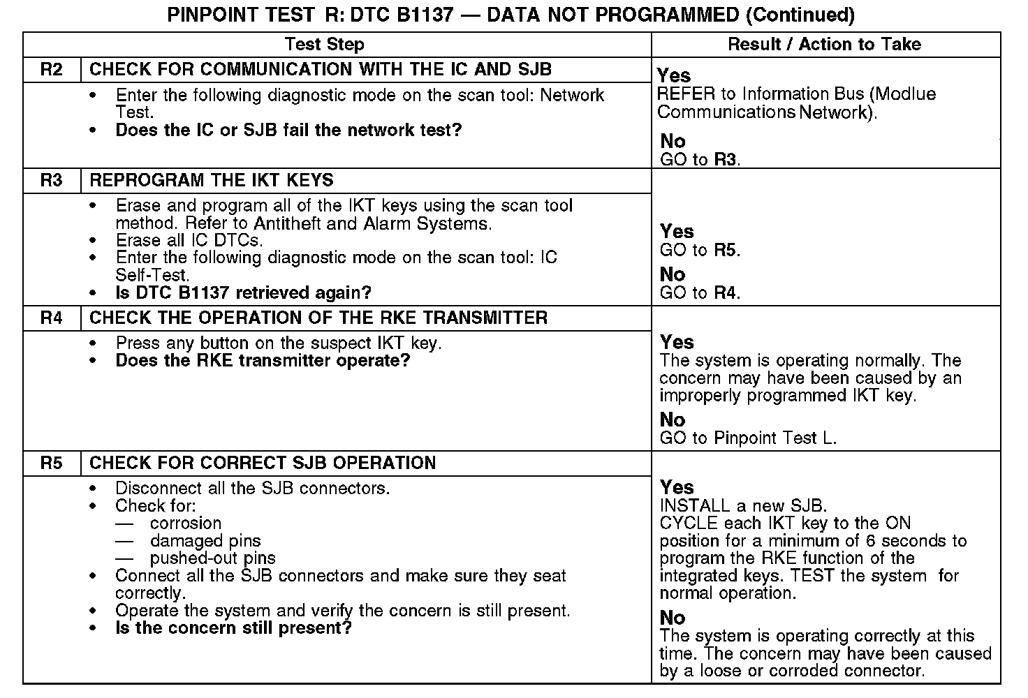- DTC B1137 (Data Not Programmed) - is a continuous DTC that sets when the IC sends the RKE TIC data to the SJB over the MS-CAN network, and it does not receive a response from the SJB that the TIC data has been stored.