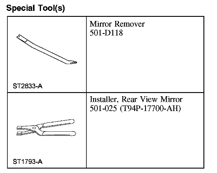 INTERIOR REAR VIEW MIRRORSpecial Tool(s)