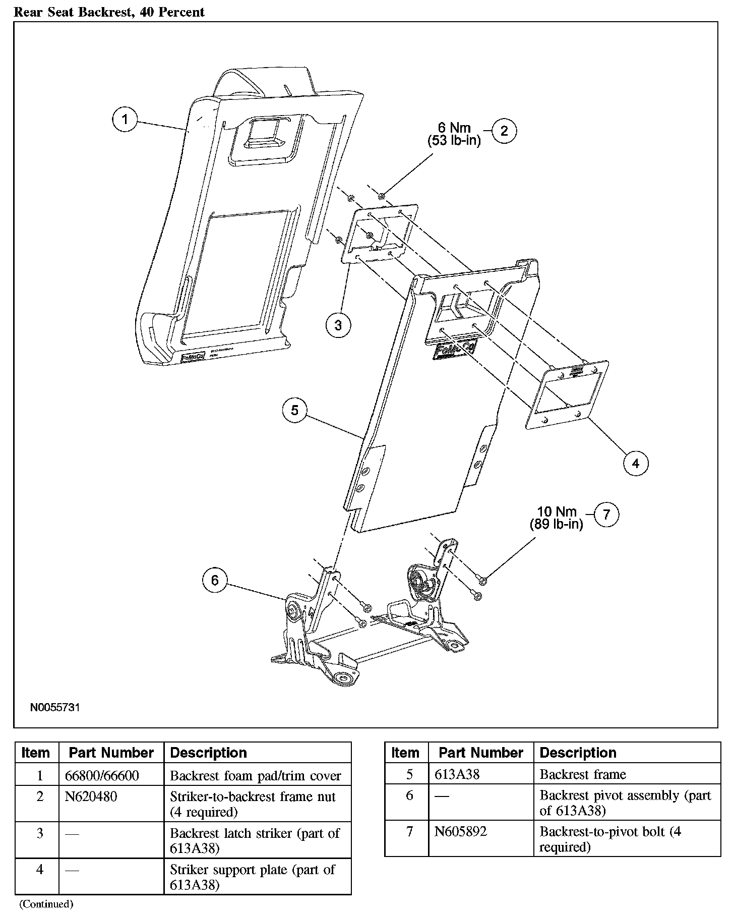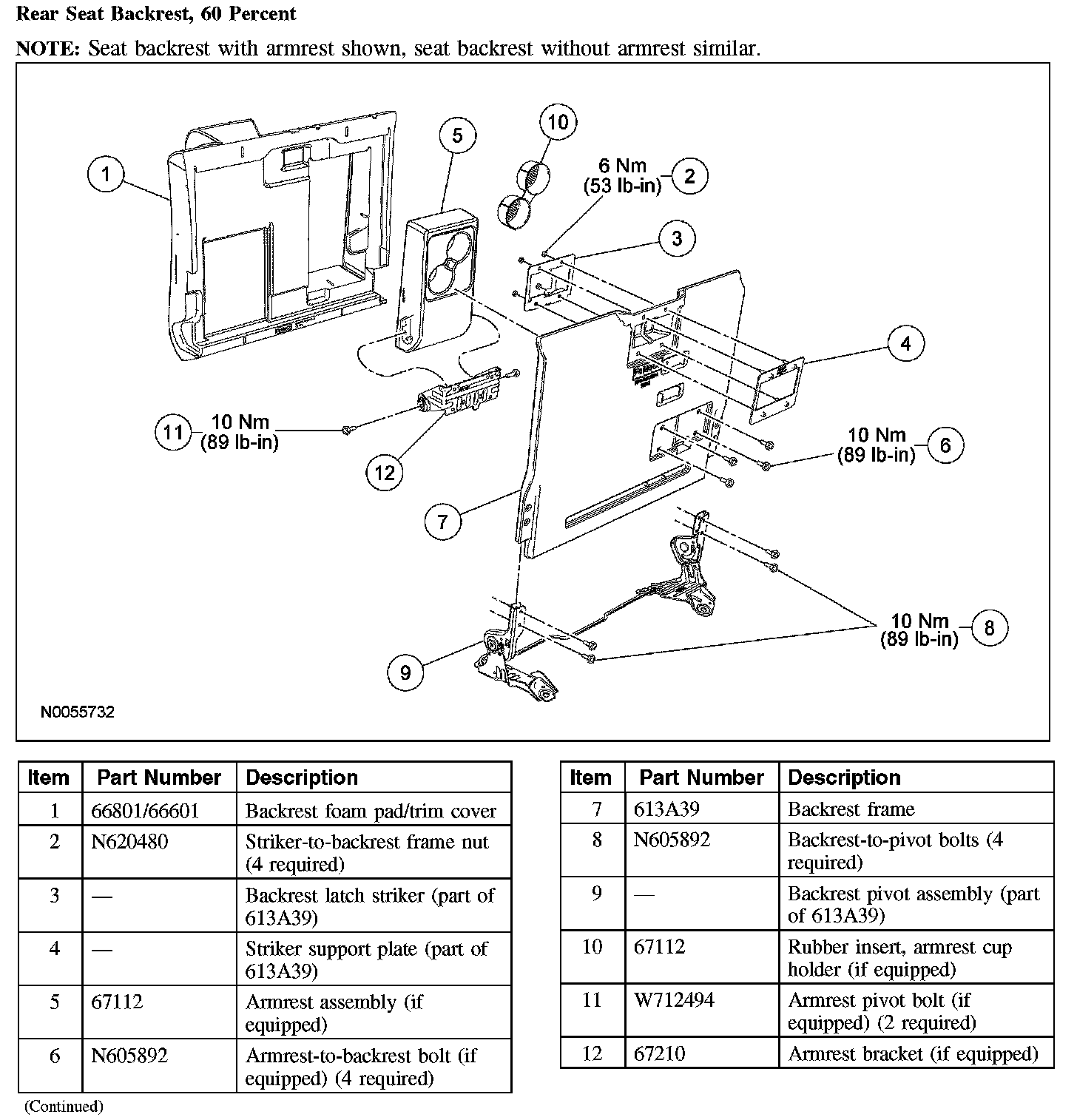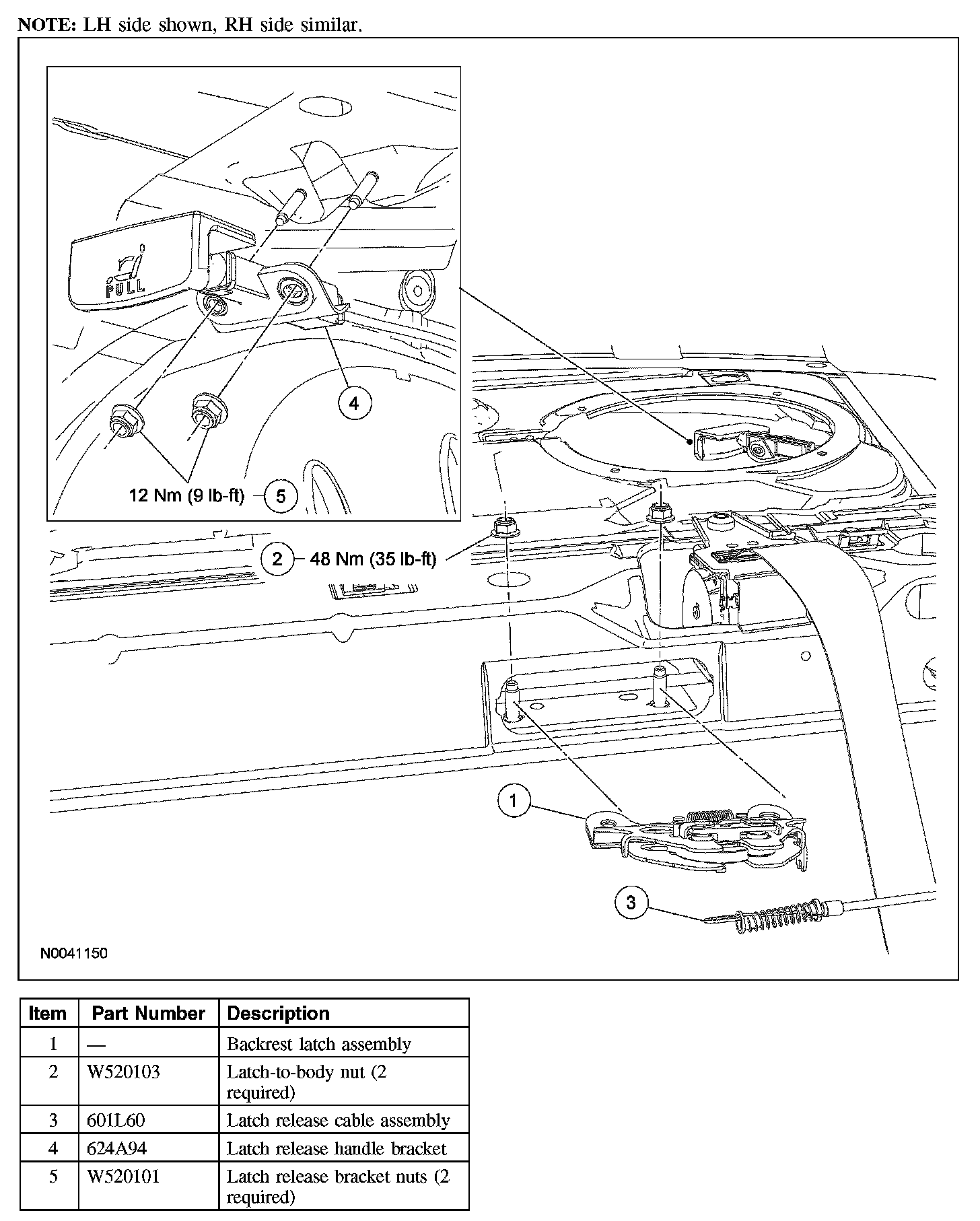 1. Remove the parcel shelf from the rear of the vehicle to access the rear backrest latch nuts.