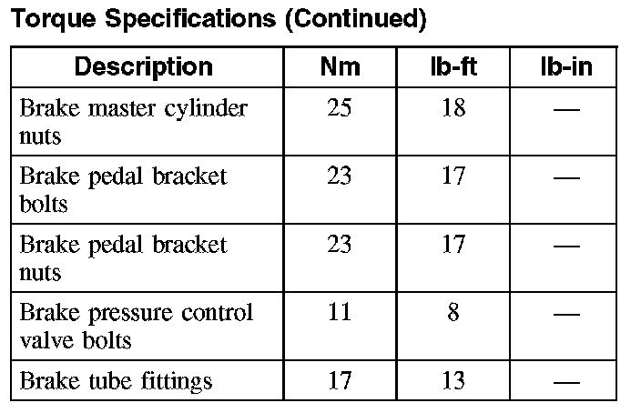 Torque Specifications (Part 1):