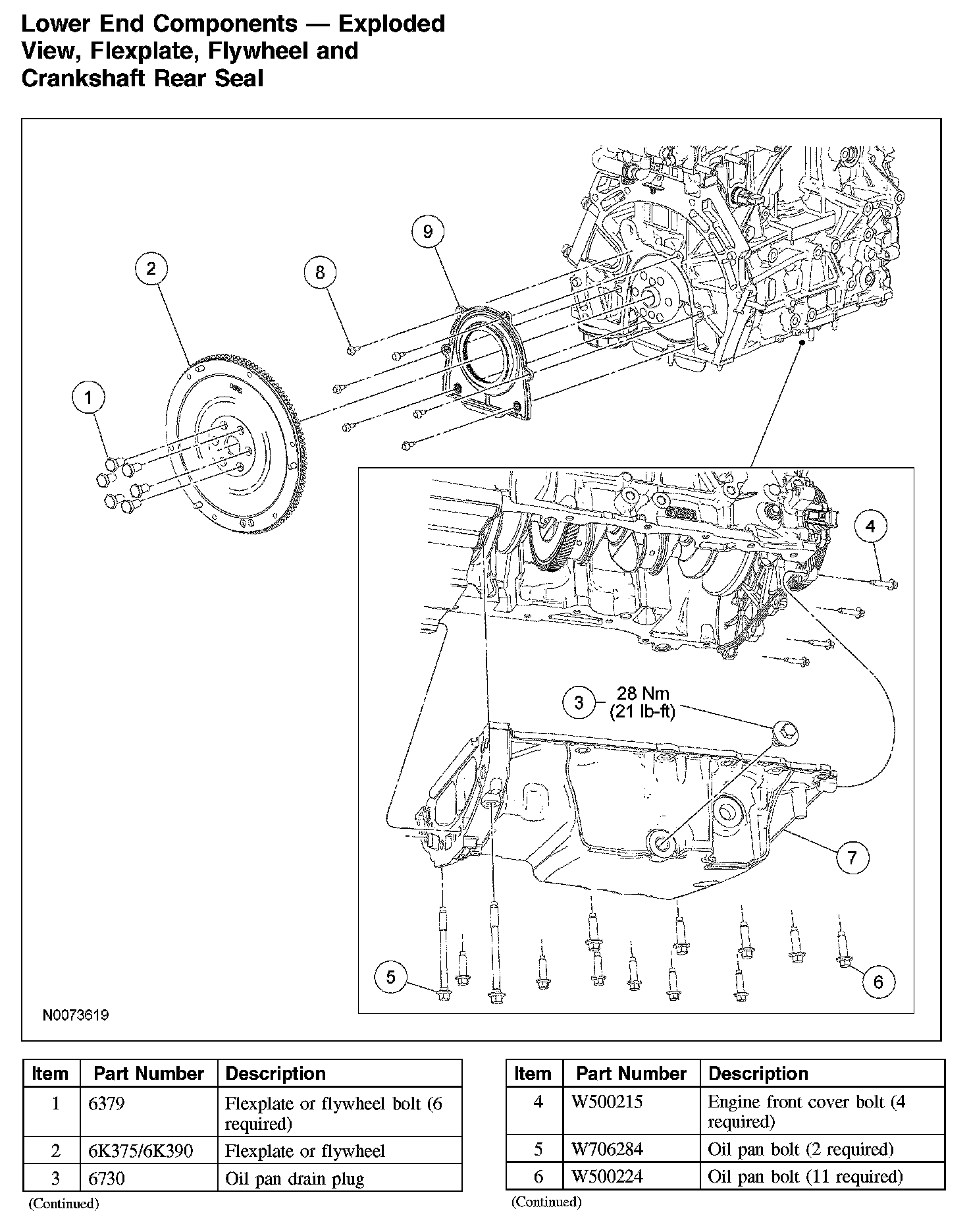Lower End Components - Exploded View, Flexplate, Flywheel and Crankshaft Rear SealLower End Components - Exploded View, Flexplate, Flywheel and Crankshaft Rear Seal (Part 1):
