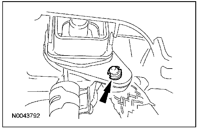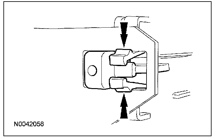 10. Remove the A/C condensor-to-radiator pin-type retainer.