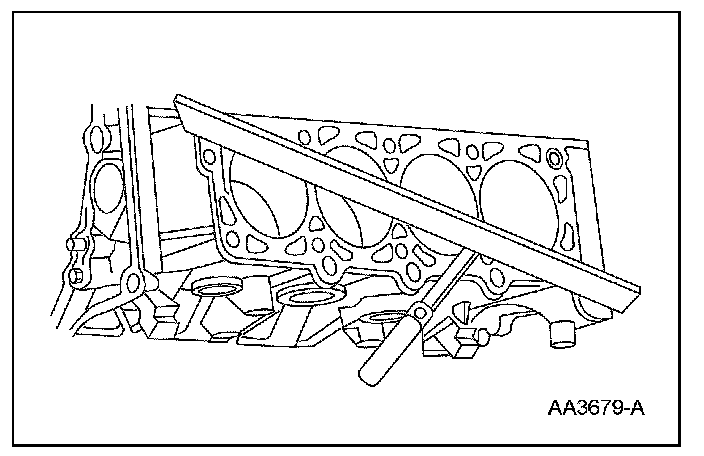 1. NOTE: Use a straightedge that is calibrated by the manufacturer to be flat within 0.005 mm (0.0002 inch) per running foot of length, such as Snap-On(R) GA438A or equivalent. For example, if the straightedge is 61 cm (24 inch) long, the machined edge must be flat within 0.010 mm (0.0004 inch) from end to end.