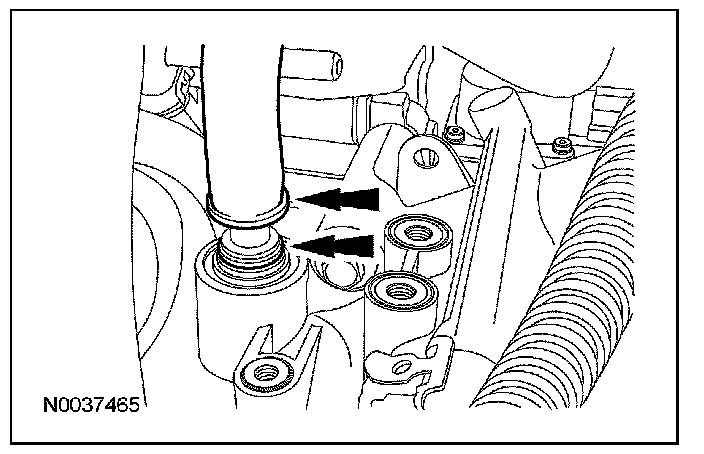 5. Depress the locking ring and disconnect the brake booster vacuum supply tube from the intake manifold.