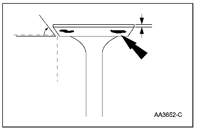 2. Inspect for abnormalities on the valve face and seat. Install a new cylinder head assembly if abnormalities are found.