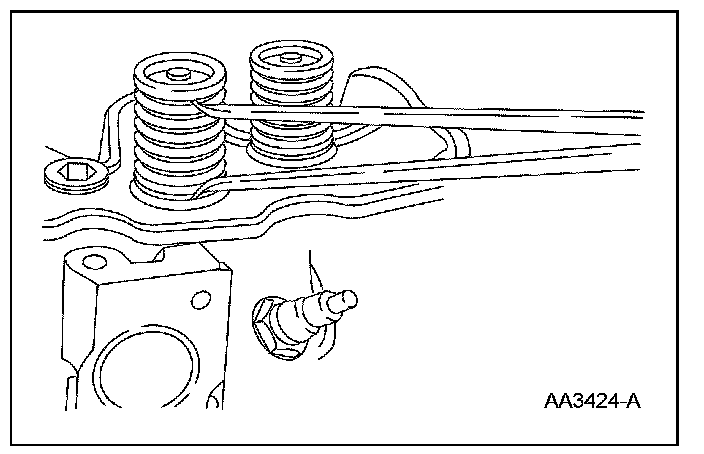 ^ Turn the valve spring and observe the space between the top of the valve spring and the square.
