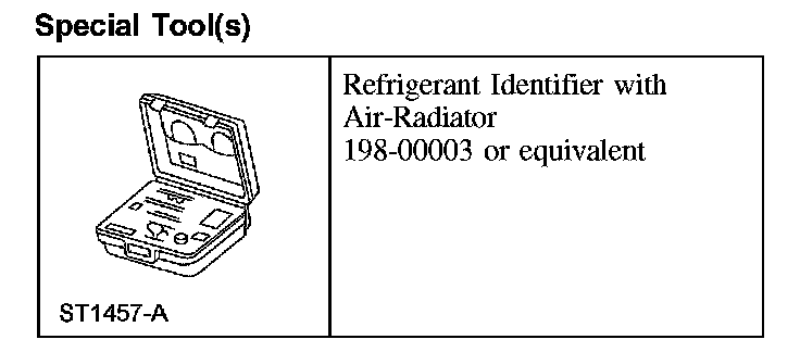 1. NOTE: An A/C refrigerant analyzer must be used to identify gas samples taken directly from the refrigeration system or storage containers prior to recovering or charging the refrigerant system.