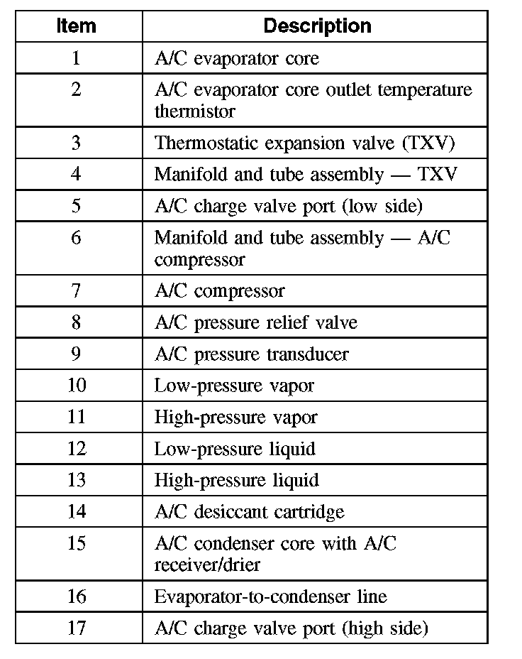 During stabilized conditions (A/C system shutdown), the refrigerant pressures are equal throughout the system. When the A/C compressor is in operation, it increases pressure on the refrigerant vapor, raising its temperature. The high-pressure and high-temperature vapor is then released into the top of the A/C condenser core.