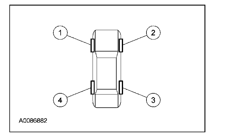 NOTE: The tire pressure sensor training procedure must be done on a single vehicle, in an area without radio frequency noise and at least 1 m (3 ft) away from other vehicles equipped with a tire pressure monitoring system (TPMS). Radio frequency noise is generated by electrical motors and appliance operation, cellular telephones, remote transmitters, power inverters and portable entertainment equipment.