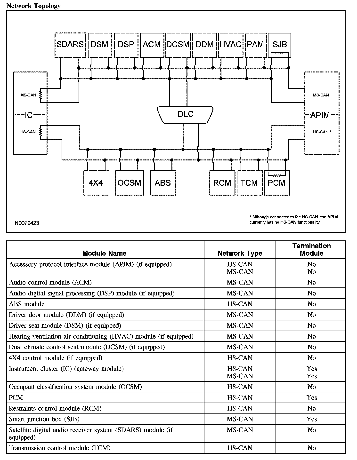 The IC is the gateway module, translating HS-CAN to MS-CAN and vice versa. This information allows a message to be distributed throughout both networks. The IC is the only module on this vehicle that has this ability.