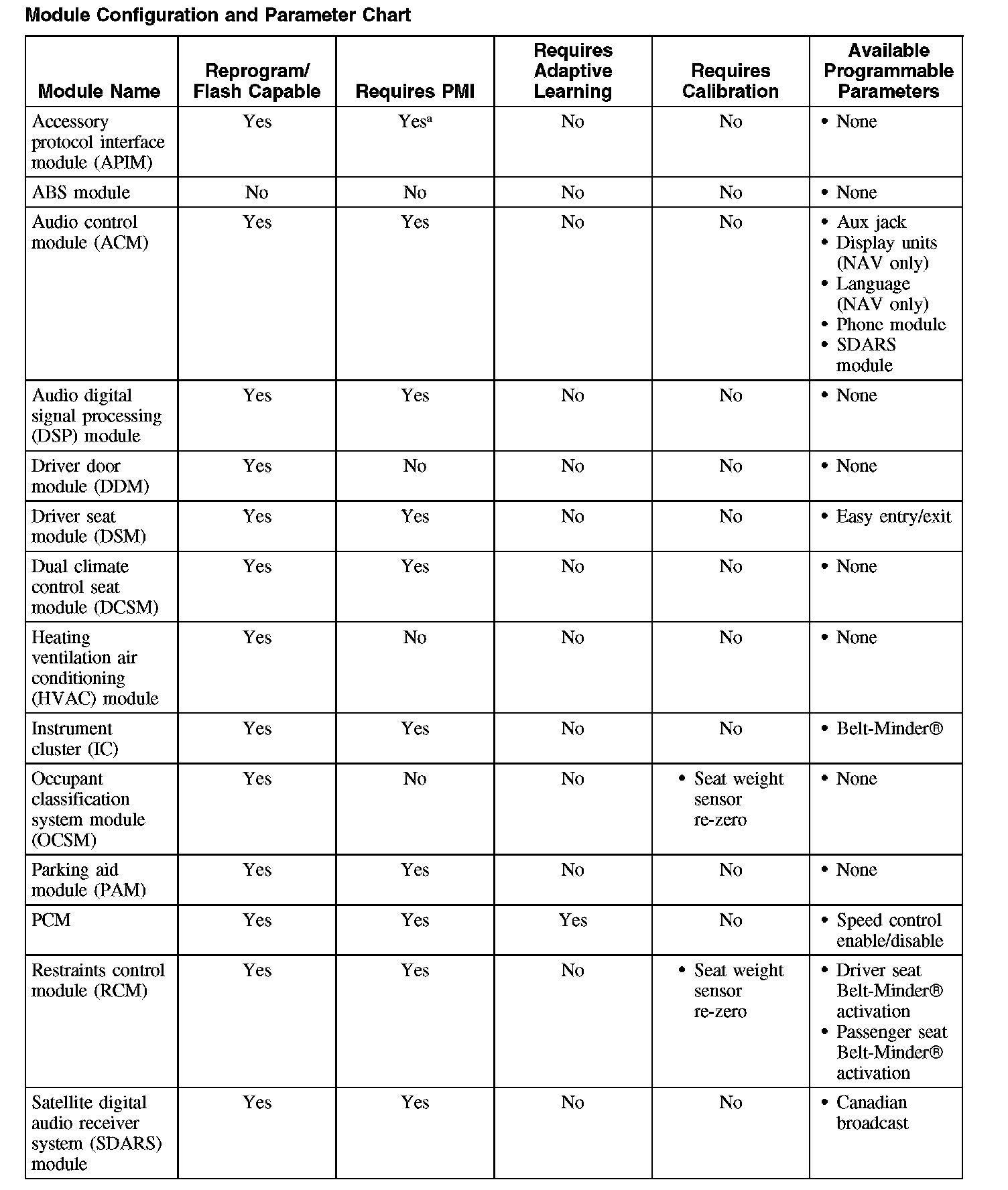 Programmable parameters are customer preference items that may be modified by the dealer via scan tool or in some cases modified by the customer following a procedure listed in the vehicle Owner's Literature. While many configuration options may exist for a module, only a few of these options are programmable parameters.