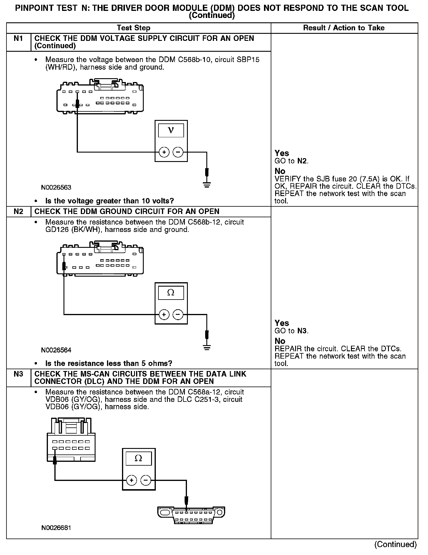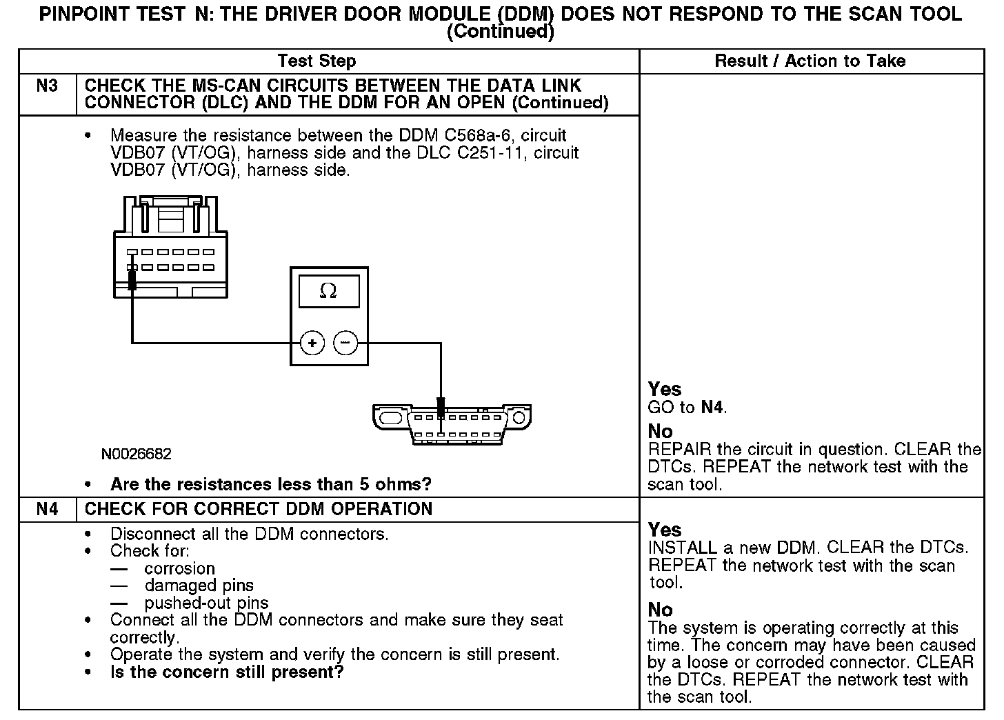 Test N: The Driver Door Module (DDM) Does Not Respond To The Scan Tool