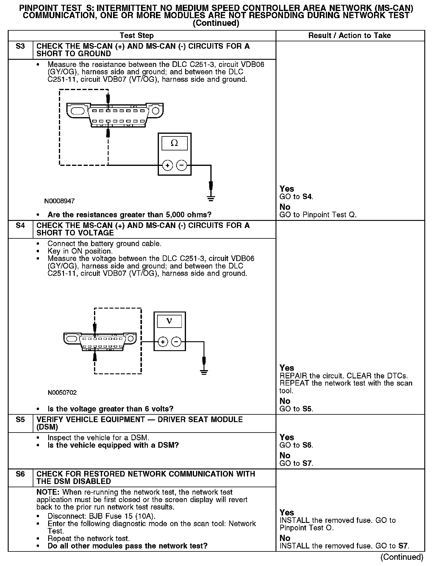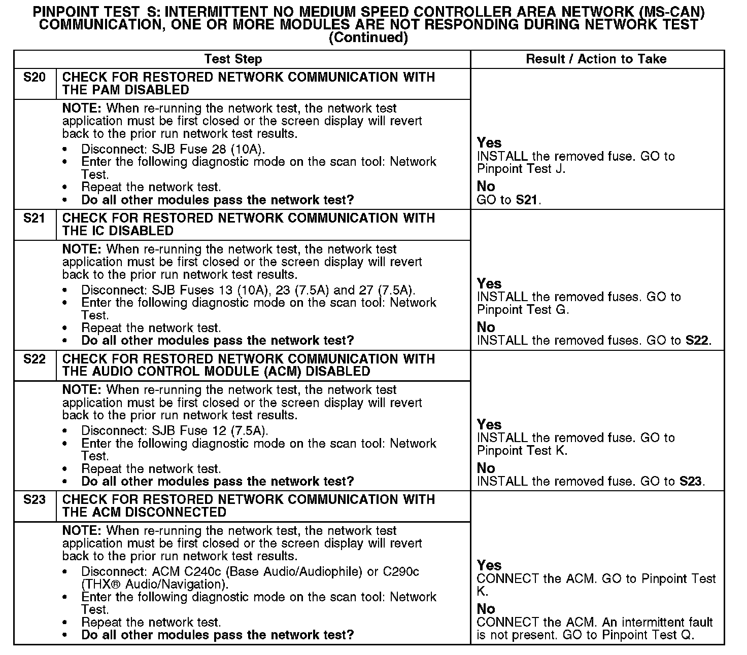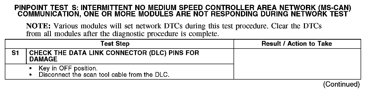 PINPOINT TEST S: INTERMITTENT NO MEDIUM SPEED CONTROLLER AREA NETWORK (MS-CAN) COMMUNICATION, ONE OR MORE MODULES ARE NOT RESPONDING DURING NETWORK TEST