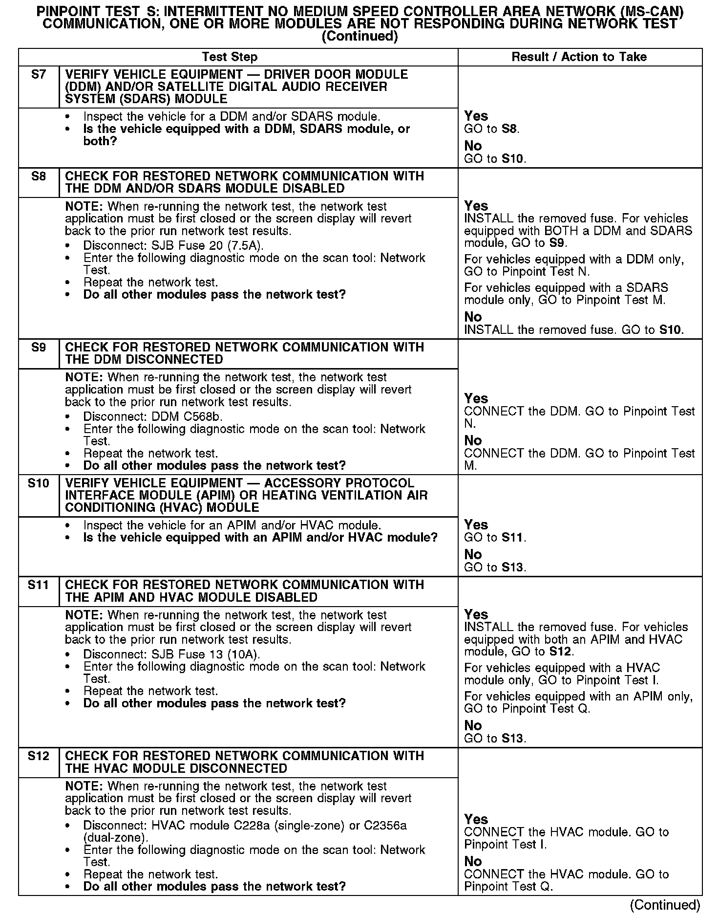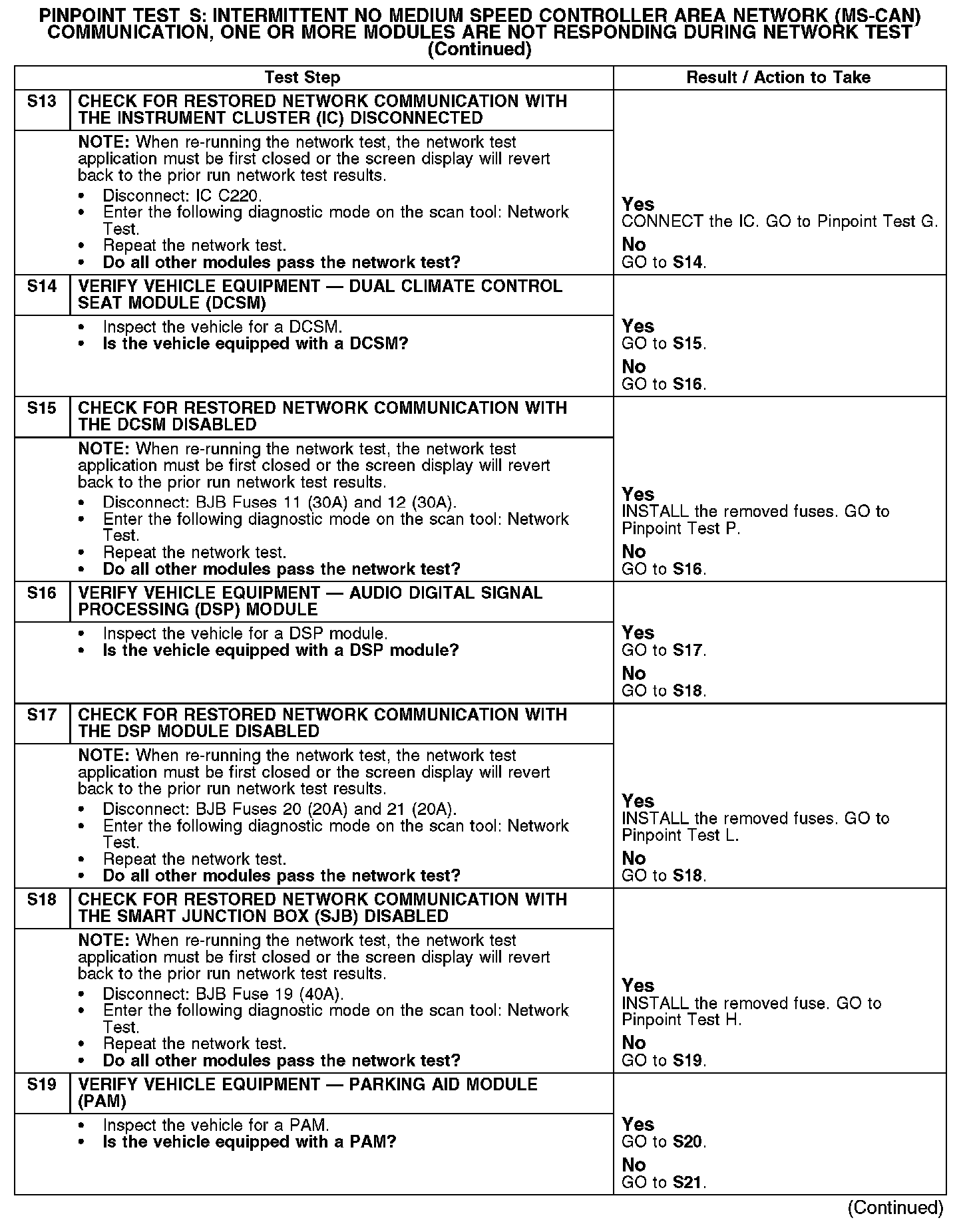 Test S: Intermittent No Medium Speed Controller Area Network (MS-CAN) Communication, One Or More Modules Are Not Responding Dur
