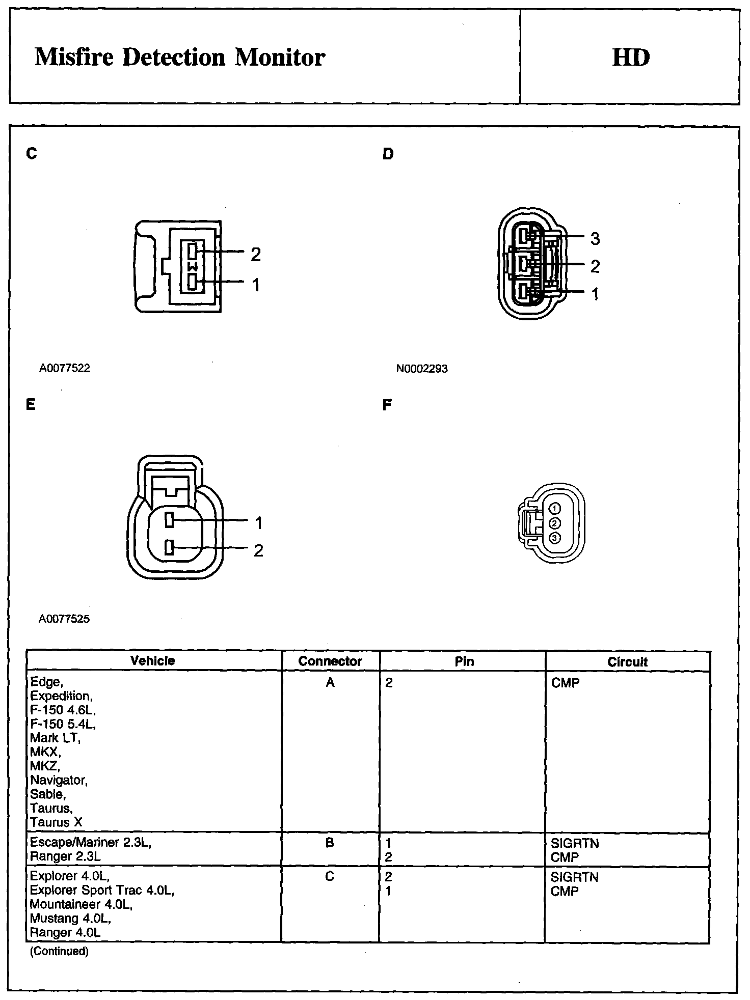 Camshaft Position (CMP) Sensor Connector Continued: