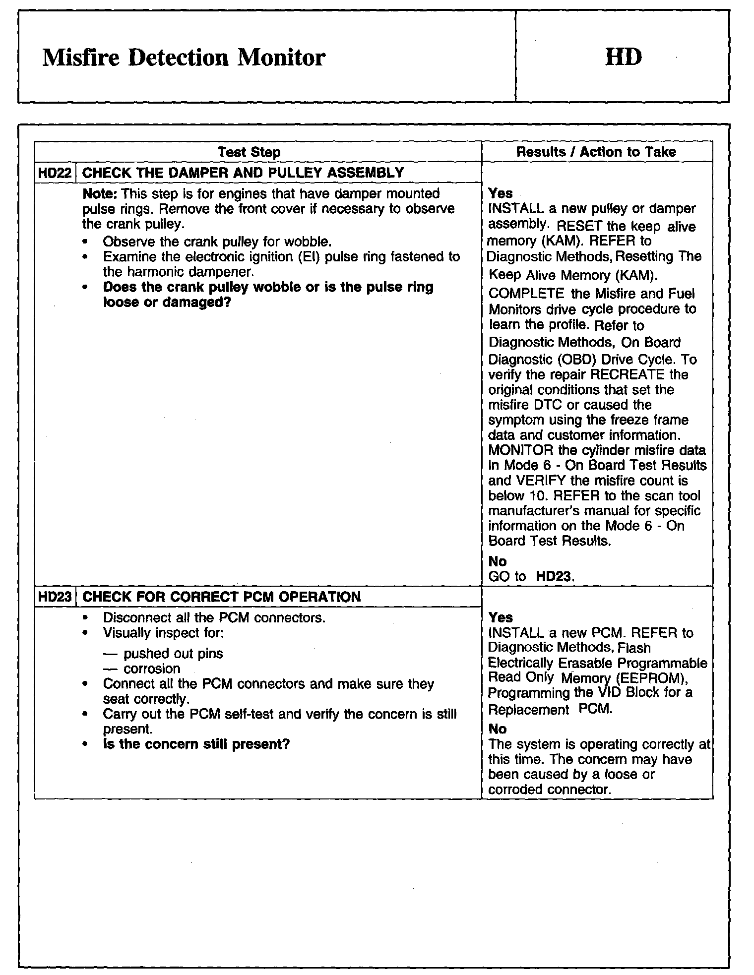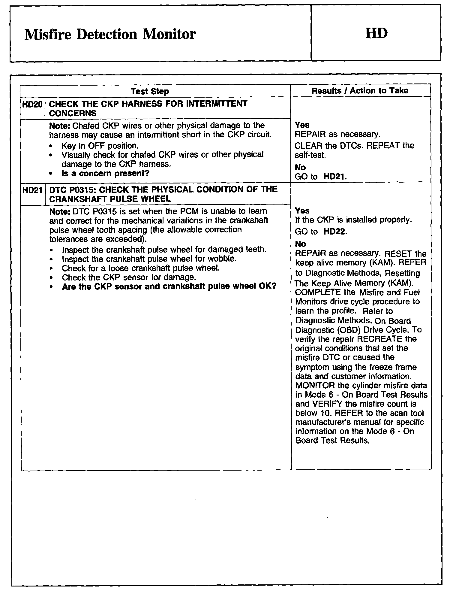Tests HD: Misfire Detection Monitor
