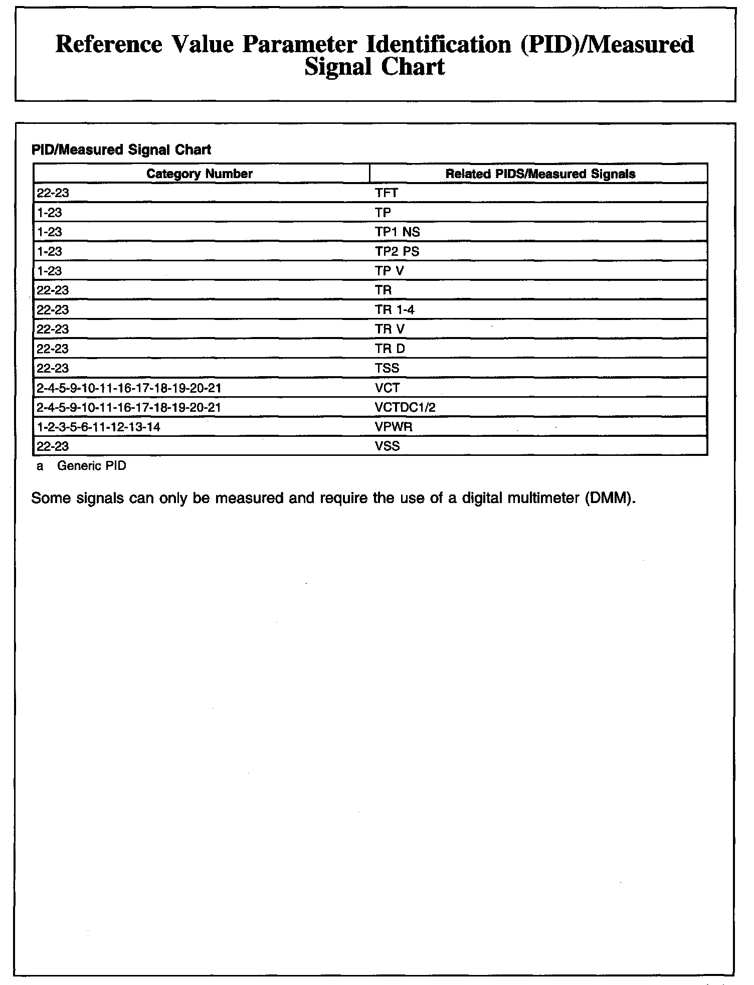 Reference Value Parameter Identification (PID)/Measured Signal Chart (Part 1):