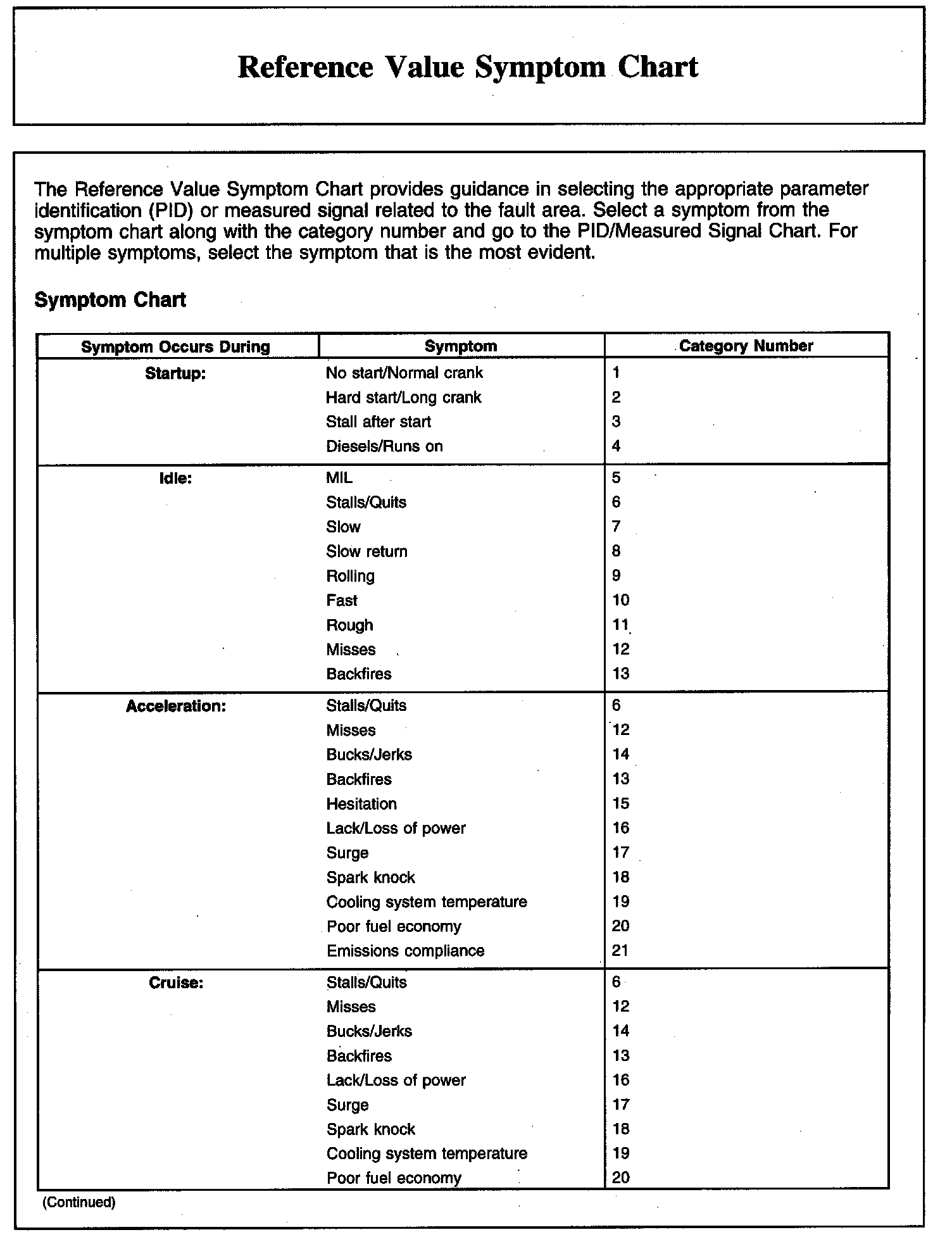 Reference Value Symptom Chart (Part 1):
