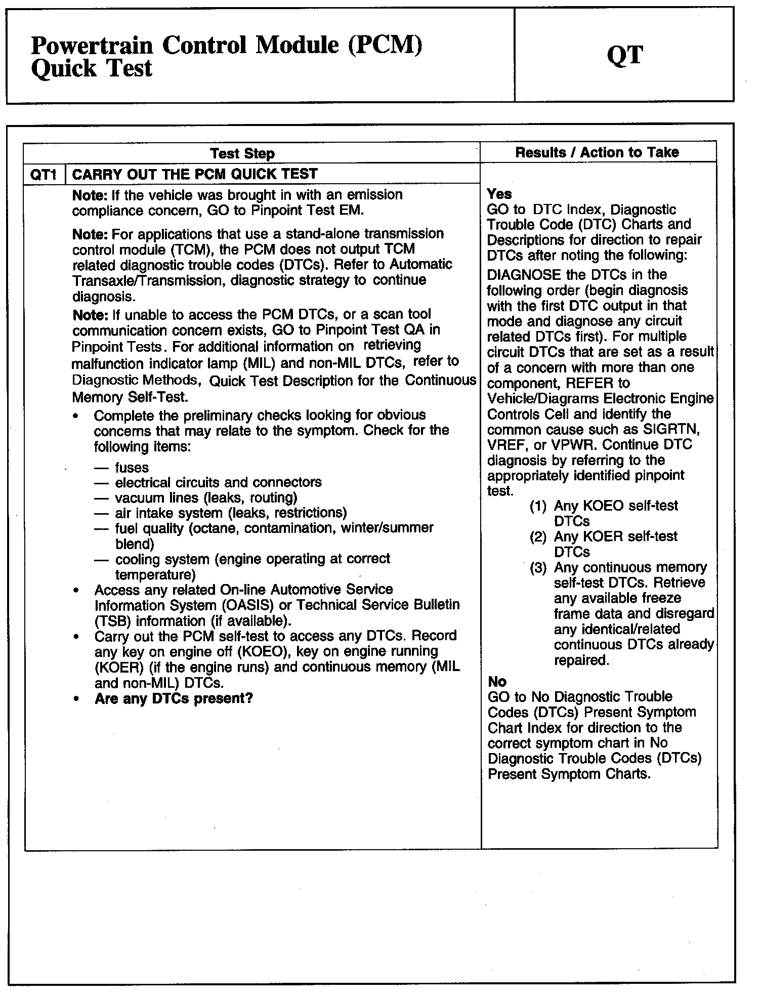 QT: Powertrain Control Module (PCM) Quick Test