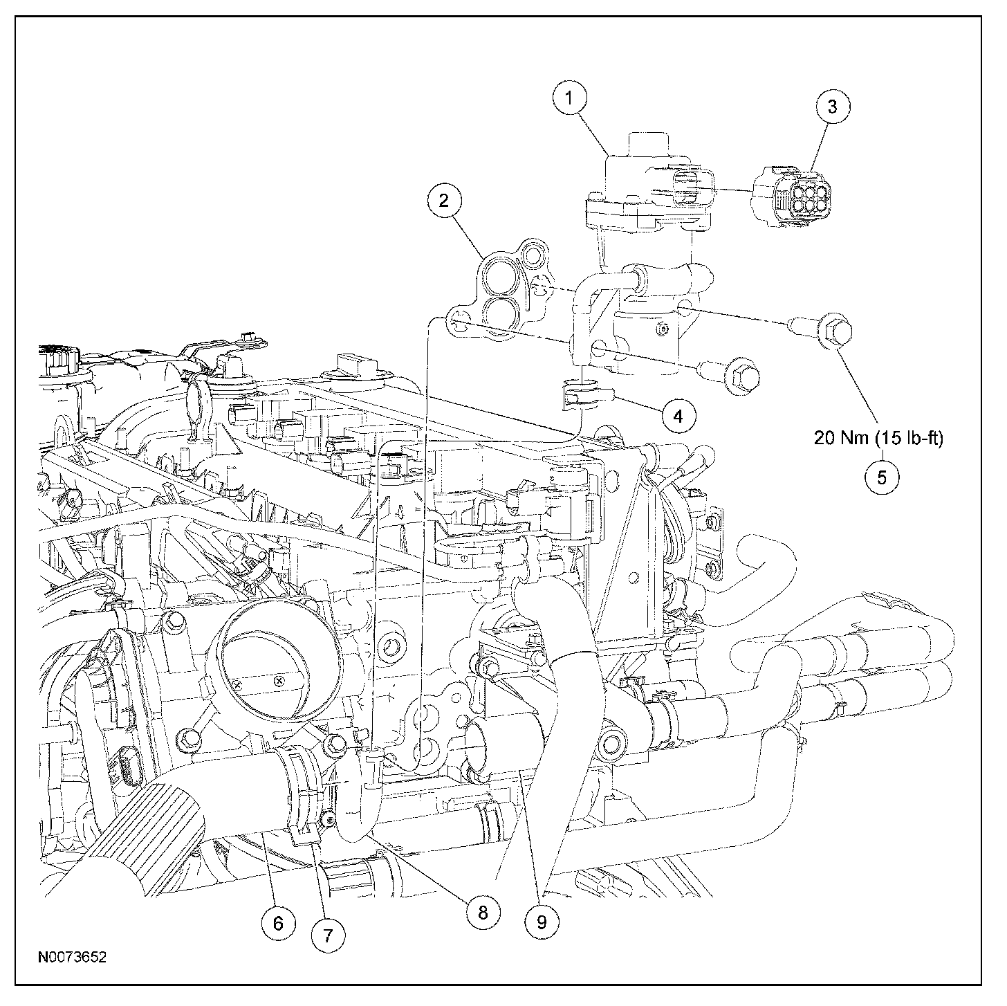 7. CAUTION: Do not use metal scrapers, wire brushes, power abrasive discs or other abrasive means to clean the sealing surfaces. These tools cause scratches and gouges that make leak paths. Use a plastic scraping tool to remove all traces of the exhaust gas recirculation (EGR) valve gasket.