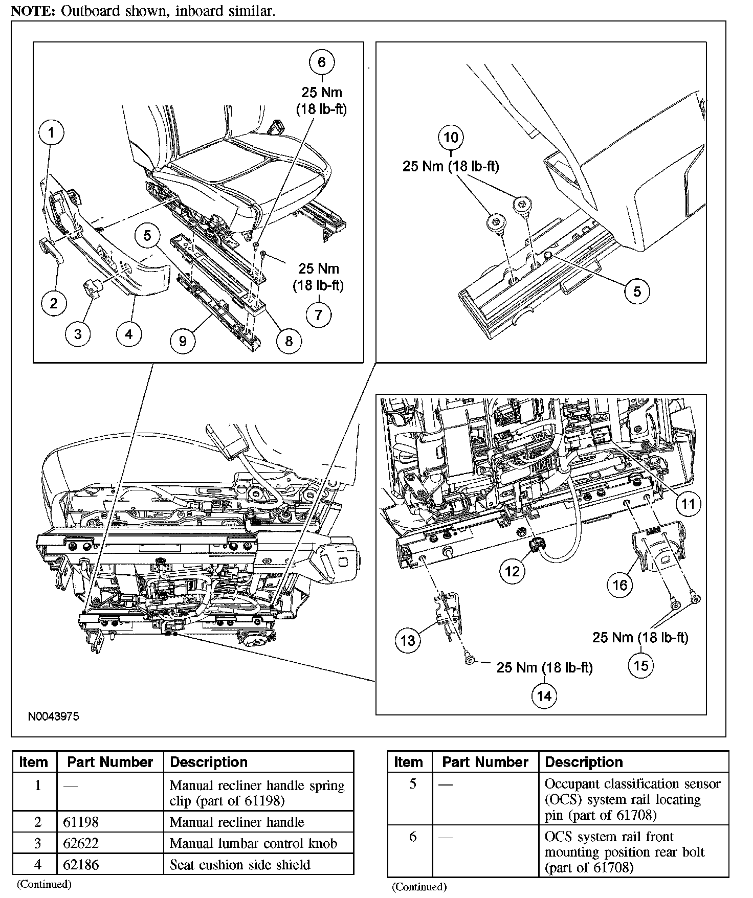 - Use care when handling the front passenger seat and track assembly. Dropping the assembly, placing excessive weight on or sitting on a front passenger seat that is not secured in the vehicle may result in damaged seat components. Failure to follow these instructions may result in incorrect operation of the occupant classification sensor (OCS) system and increases the risk of serious personal injury or death in a crash.