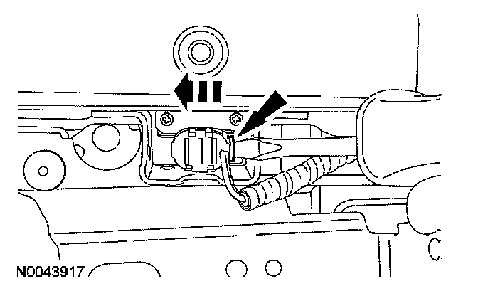 On the affected side, using a suitable tool, release the tab and disconnect the OCS system rail electrical connector.