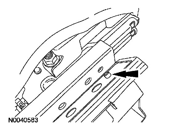 12. NOTE: Note what position the locator pin on the OCS system rail goes through the OCS system rail shield and into the rear mounting point of the seat track for installation.
