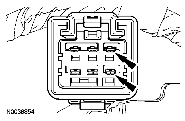- If equipped with a power seat track, apply power and ground to the pins shown.