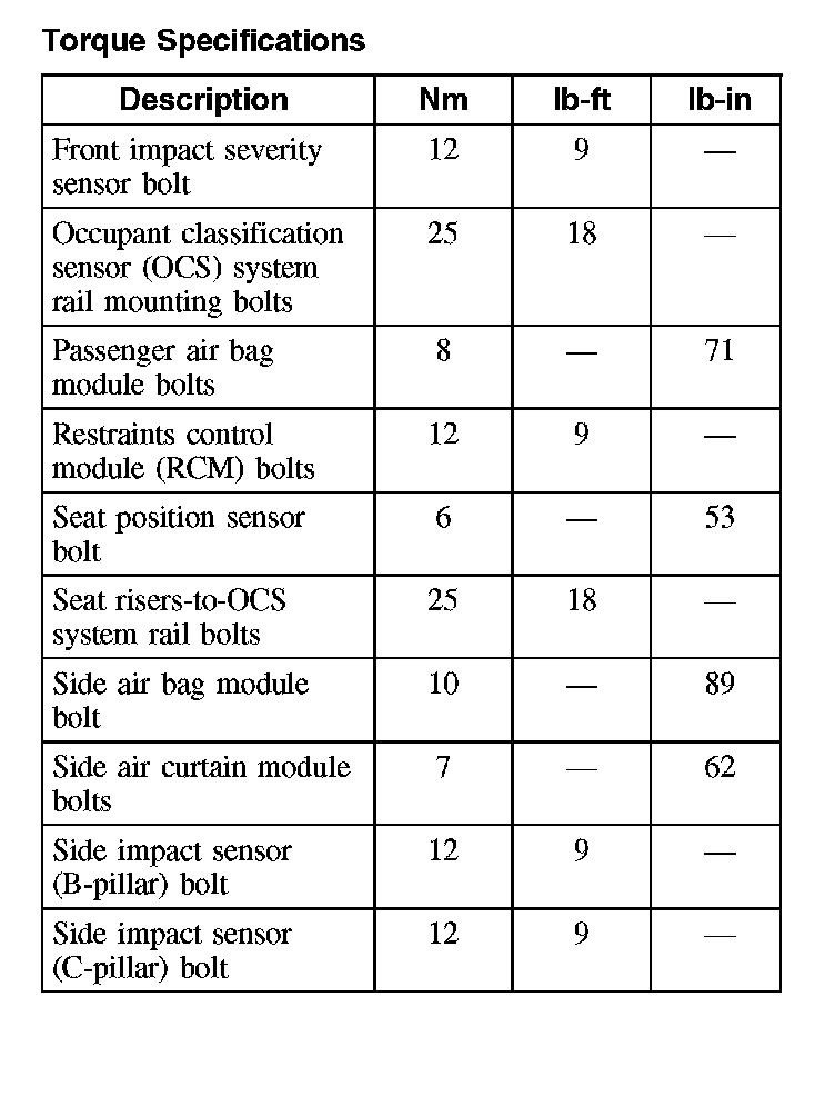 Torque Specifications:
