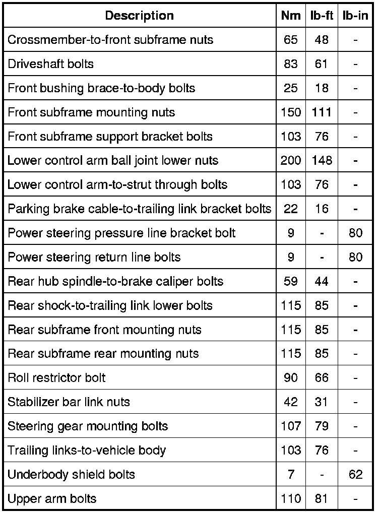 Torque Specifications