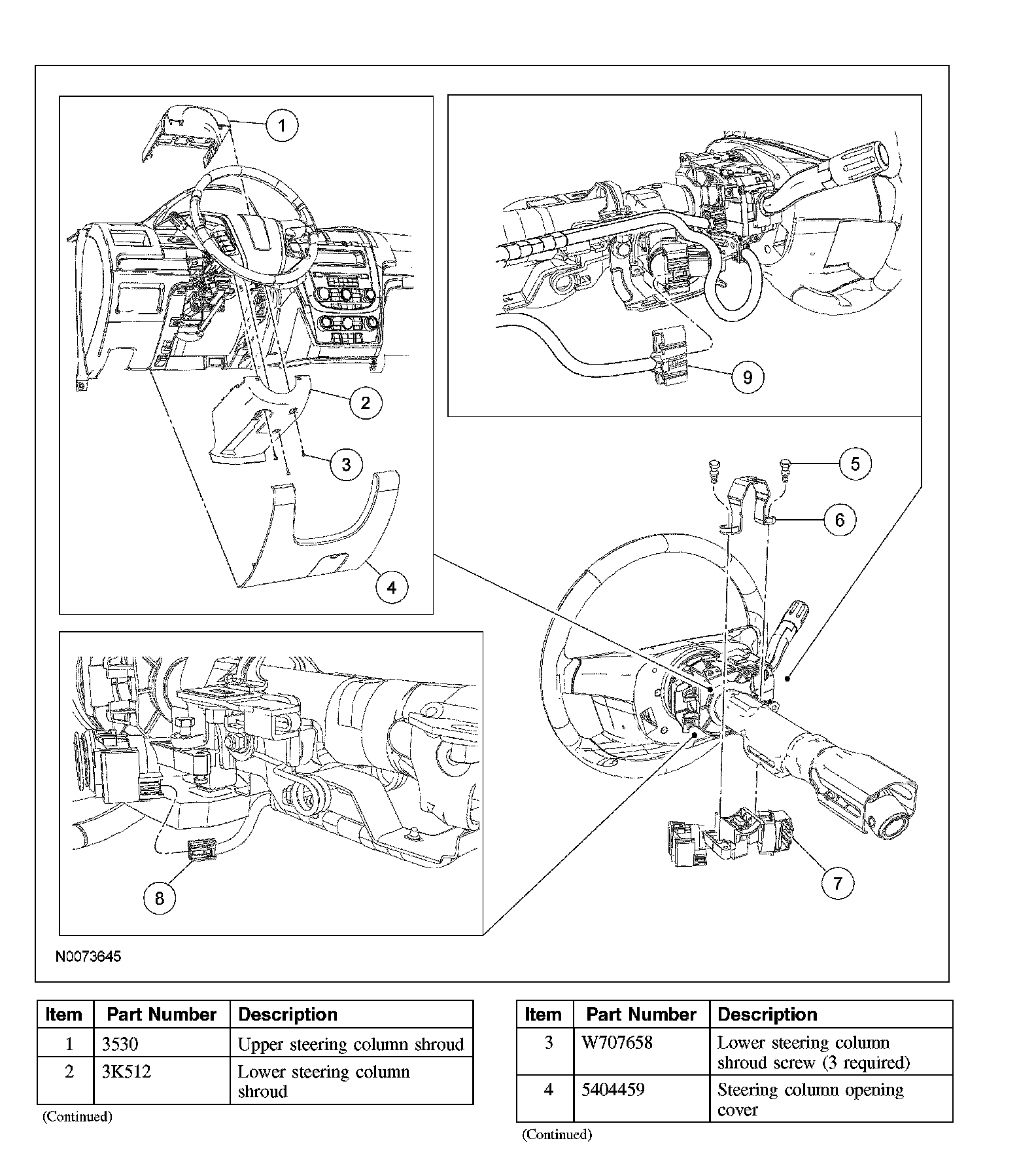 1. NOTE: The steering column opening cover is held in place by tabs that clip to the instrument panel.