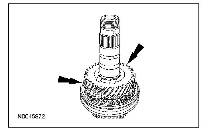 ^ Inspect for worn or damaged splines, synchronizer insert groove or end surface.