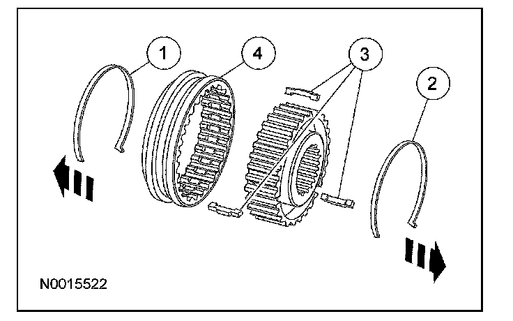 ^ Inspect all synchronizer components for wear and damage. Install a new synchronizer as necessary.